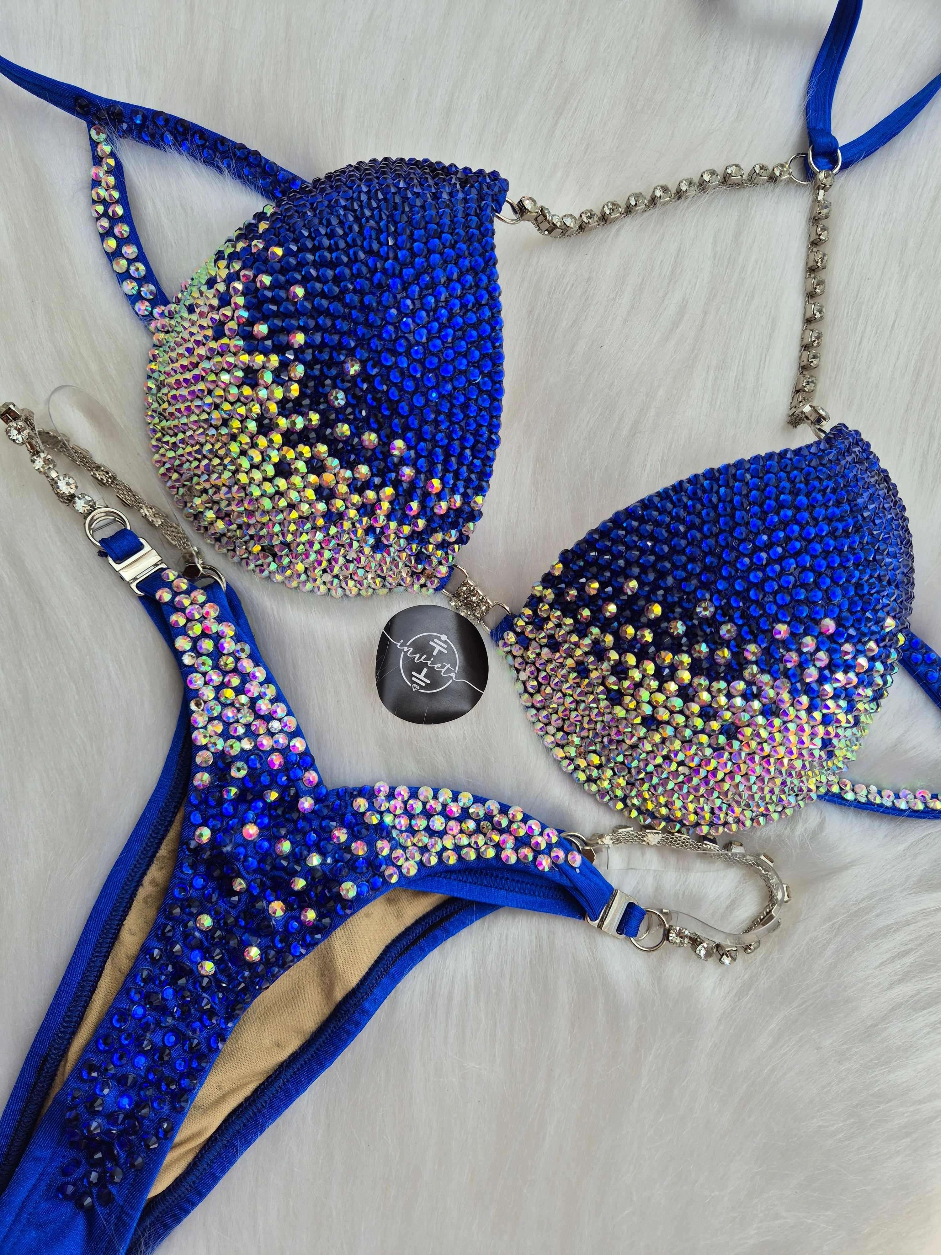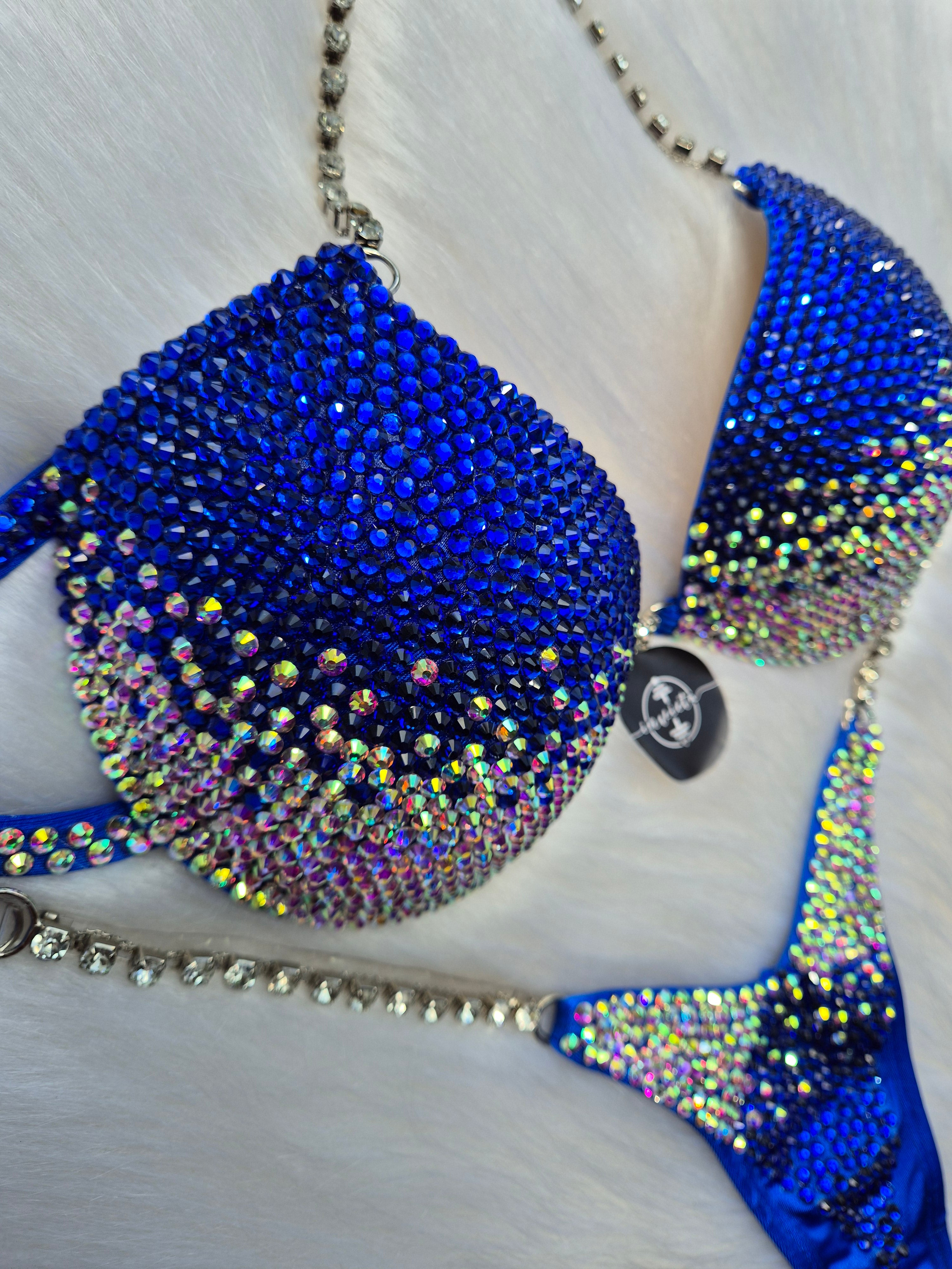Bordado em degrade do Cristal Clear AB, Rosa Neon e Azul Royal.
