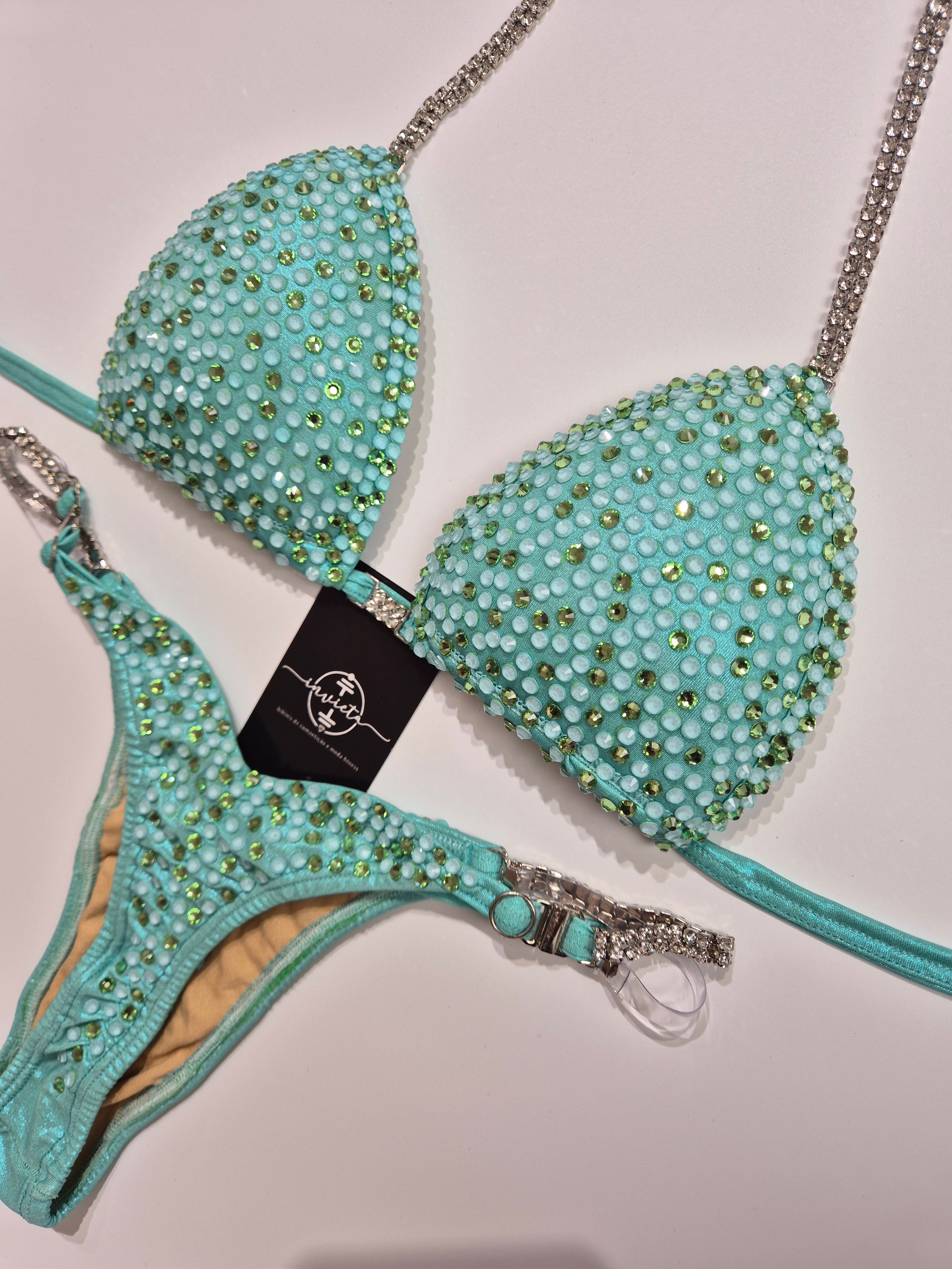 Calcinha com strass e ajustes laterais.
